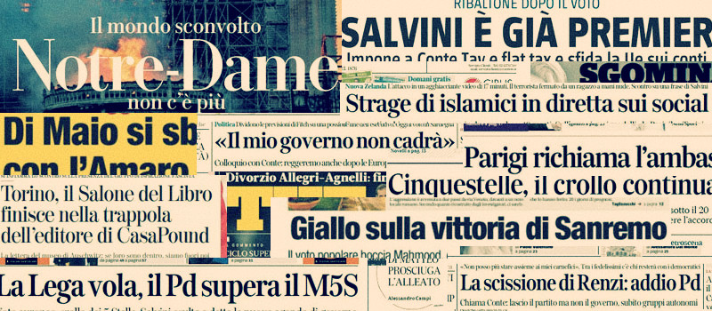 È il caso di segnalare – anche in questo caso senza rallegrarsi molto – l’imperversare dei giochi di parole, che da occasionale arguta trovata si sono trasformati in pigra routine capace raramente di fare alzare un sopracciglio. Poi ci sono state le falsificazioni da prima pagina sulla morte di Imane Fadil e su quella di Noa Pothoven, e alcune previsioni poco avvedute. Ad aggiungere qualche buonumore in più sono soprattutto le prime pagine dei quotidiani locali, con le loro gioie o tormenti più sentiti e condivisi, spesso più concreti.