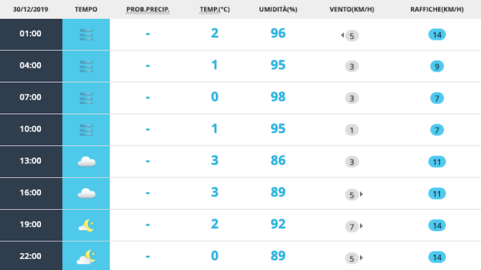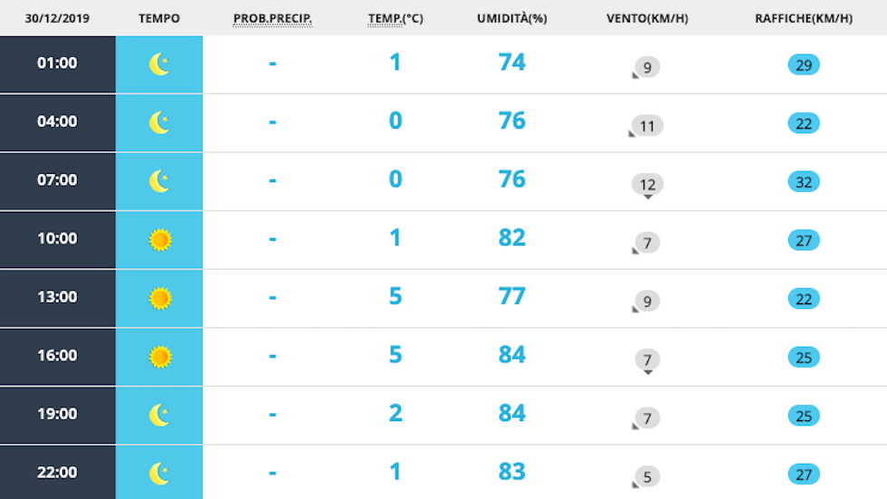 Sarà una giornata di cielo sereno con temperature discretamente basse, mai superiori ai 5 gradi centigradi.