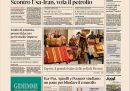 Quasi tutti i giornali di oggi dedicano l’apertura all’uccisione del potente generale iraniano Suleimani, colpito all’aeroporto di Baghdad da un attacco con i droni ordinato dal presidente degli Stati Uniti Trump, e alle minacce di reazione dell’Iran all’azione militare statunitense. Solo alcuni giornali, per i quali quello che succede fuori dall’Italia non è rilevante, fanno scelte diverse: il Fatto si occupa della proposta di modifica alla nuova norma sulla prescrizione, il Tempo titola sui rapporti fra Partito Democratico e Movimento 5 Stelle, la Verità apre sui dati sull’immigrazione, e Libero sostiene che gli italiani siano più ricchi di quanto si crede, mentre i giornali sportivi non vedono l’ora che Ibrahimovic torni a giocare nel Milan.