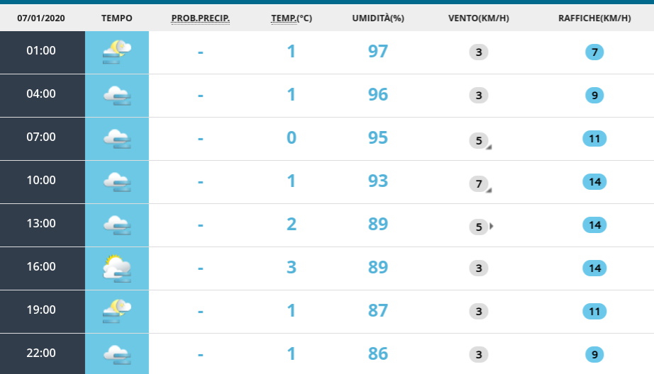 Meteo: le previsioni per martedì 7 gennaio