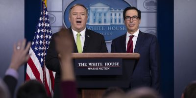 Il segretario di Stato americano Mike Pompeo e il segretario al Tesoro Steven Mnuchin hanno annunciato durante una conferenza stampa che gli Stati Uniti imporranno ulteriori nuove sanzioni all’Iran in seguito all’attacco compiuto nella notte tra martedì e mercoledì contro due basi irachene, come ritorsione dopo l’uccisione del generale iraniano Qassem Suleimani. L’attacco non aveva causato morti né feriti.