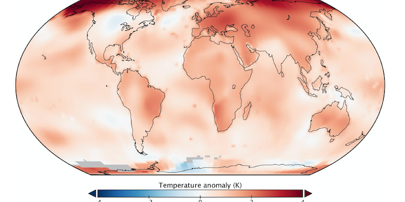 Il 2019 è stato il secondo anno più caldo registrato dal 1880, secondo un’analisi condotta dalla NASA e dalla National Oceanic and Atmospheric Administration (NOAA), l’agenzia federale degli Stati Uniti che si occupa di oceani e clima. Nel 2019 le temperature medie globali del 2019 sono state di 0,98 °C più calde della media degli anni dal 1951 al 1980, e di poco inferiori a quelle del 2016, quando il riscaldamento dell’oceano Pacifico provocato dal fenomeno del “Niño” fu particolarmente intenso. Le temperature elevate del 2019 rientrano in una tendenza che va avanti da diversi anni, con gli ultimi cinque in particolare che sono stati i più caldi di sempre.