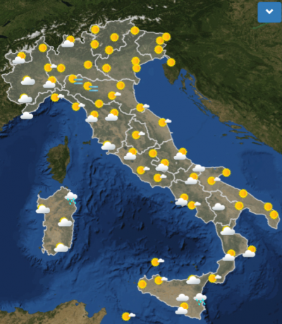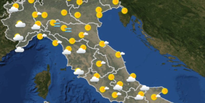 Le previsioni meteo per la giornata di martedì dicono che di mattina ci sarà un generale bel tempo in tutta Italia, con l’eccezione delle province di Siracusa e Olbia (anche se più tardi, di pomeriggio, potrebbe peggiorare anche nella zona di Nuoro). Di sera continuerà a piovere in Sardegna mentre nelle altre regioni sarà leggermente nuvoloso, con nebbia nella zona della pianura Padana.