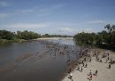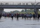 Centinaia di migranti hanno attraversato un fiume tra Guatemala e Messico