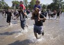 I militari della Guardia nazionale messicana sono intervenuti con scudi antisommossa cercando di impedire ai migranti di arrampicarsi sulle rive, ma sembra che alcuni di loro ci siano riusciti e che siano dunque entrati nel paese. Molti di loro sono invece rimasti dalla parte del fiume che appartiene all’Honduras. Ci sono stati diversi scontri: BBC dice che la polizia avrebbe utilizzato dei gas lacrimogeni e che alcuni migranti avrebbero risposto lanciando dei sassi.
