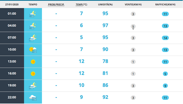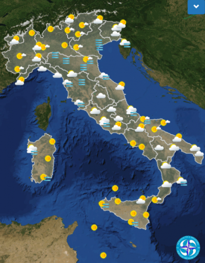 Sulla mappa del meteo di domani, la penisola è divisa a fette orizzontali, e sarà questione di essere nella fetta fortunata: da nord a sud c’è sole, molto a nord, poi una fascia di nebbia sulla parte meridionale della Pianura padana, una fascia di nuvole su Toscana, Umbria, Marche, Abruzzo e Lazio, un’altra fascia di sole su Campania e Puglia del Nord, un’altra di nuvole su Basilicata, Calabria e Salento e infine sole, sulla Sicilia. Il pomeriggio distribuirà il sole più generosamente dappertutto, anche se sarà un sole non pienamente convinto. La serata sarà nuvolosa a nord e serena a sud, mentre la notte a nord porterà pioggia e neve.