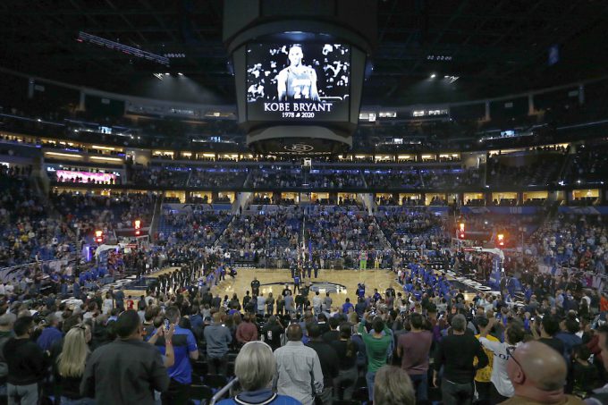 Il ricordo di Kobe Bryant prima della partita di domenica tra Orlando Magic e Los Angeles Clippers. (AP Photo/Reinhold Matay)
