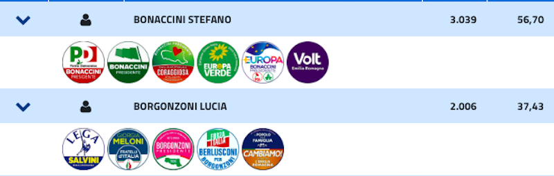 Non sono state sufficienti nemmeno le attenzioni della Lega, il partito più forte della coalizione, nonostante il segretario Matteo Salvini avesse chiuso la campagna elettorale con un grosso comizio proprio a Bibbiano, e Borgonzoni fosse stata una delle prime a interessarsi al caso degli affidi a livello nazionale – a settembre prese la parola al Senato con una maglietta con scritto “parliamo di Bibbiano” – e ad attaccare il Partito Democratico per il suo presunto coinvolgimento nella vicenda giudiziaria. La Lega ha ottenuto 1.483 voti, pari al 29,46 per cento del totale, ma è stata superata di più di 10 punti proprio dal Partito Democratico, che ne ha ottenuti 2.049, pari al 40,7 per cento del totale.