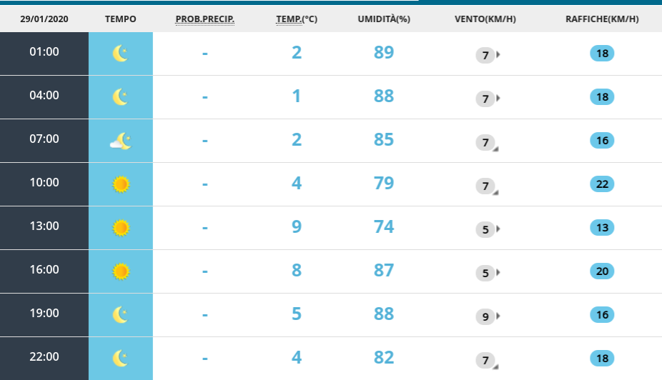 Le previsioni meteo per mercoledì 29 gennaio