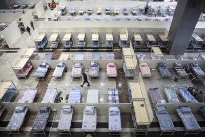 Il centro congressi adibito a dormitorio a Wuhan, 4 febbraio 2020