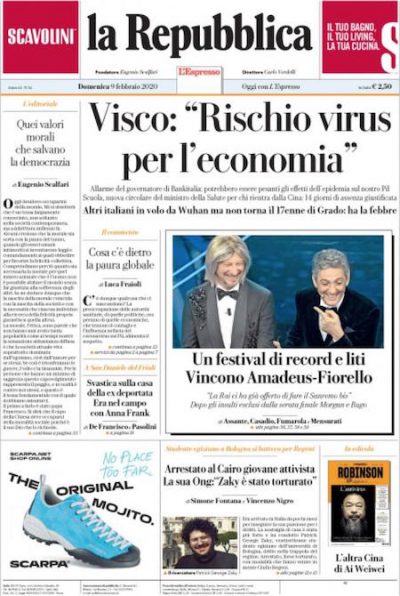 Alcuni quotidiani hanno ricevuto la notizia della vittoria di Diodato al Festival di Sanremo in tempo per metterla in prima pagina, altri no e hanno dovuto inventarsi qualcos’altro. Su molte prime pagine si parla quindi di politica, coronavirus e anche dell’inaspettata vittoria del Verona sulla Juventus in campionato.