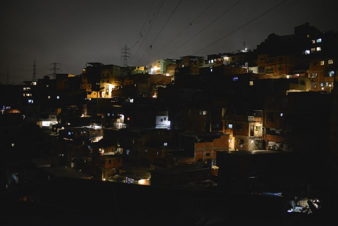 Un isolato parzialmente colpito da un blackout alla periferia di Caracas. (AP Photo/Matias Delacroix)