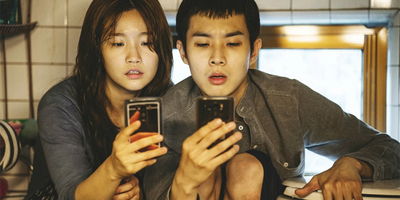 Parasite è ambientato ai giorni nostri in Corea del Sud e inizia presentando i quattro membri della famiglia Kim: padre, madre, figlio e figlia. I genitori sono disoccupati e nemmeno i figli, in età da università, studiano o lavorano. Vivono tutti e quattro in un umido seminterrato di un quartiere povero, la cui unica vista sull’esterno è data da una finestra al livello della strada.