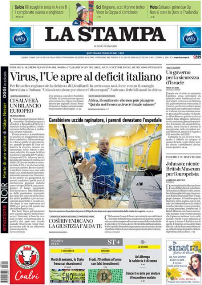 Il decreto del governo sul coronavirus, i profughi siriani in Turchia, e il rapinatore ucciso a Napoli da un carabiniere