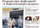 È sempre il coronavirus (SARS-CoV-2) a occupare le prime pagine dei giornali, che oggi per la maggior parte titolano sulle indicazioni del comitato scientifico incaricato dal governo, che chiede che gli anziani rimangano in casa, la sospensione di tutti gli eventi pubblici per un mese, e di mantenere una distanza di sicurezza di almeno un metro nel salutarsi. Avvenire segue anche oggi la crisi dei profughi fra Turchia e Grecia, mentre i giornali sportivi si occupano delle polemiche sulle date in cui recuperare le gare di serie A rinviate per il coronavirus.