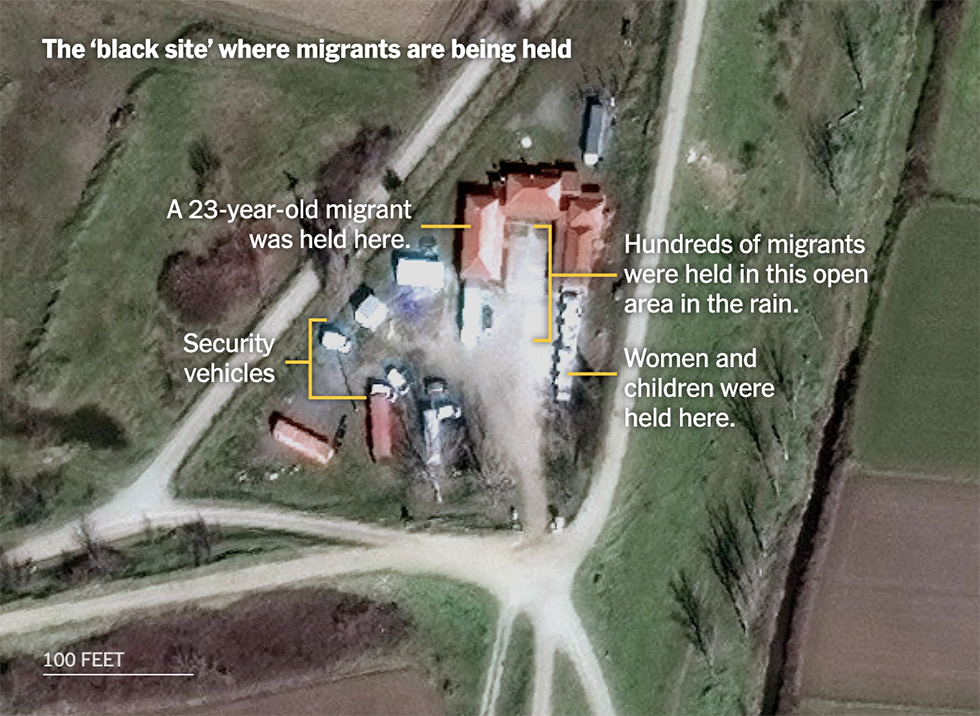 Tramite incroci di informazioni, descrizioni, dati e coordinate satellitari, il New York Times è riuscito a localizzare il centro di detenzione, che si trova nei terreni agricoli tra Poros e il fiume Evros.