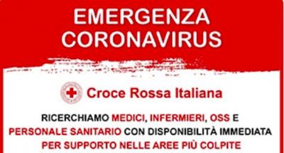 La Croce Rossa Italiana ha diffuso un avviso per reclutare immediatamente medici, infermieri, OSS (operatori socio-sanitari) e personale sanitario «con disponibilità immediata» da impiegare nelle aree più colpite dal coronavirus. Nell’avviso, che è stato pubblicato anche sul sito del ministero della Salute, non è specificato se si tratti di lavoro volontario o retribuito. Per candidarsi si deve mandare un sms al numero 435 35 35 con specificata la propria qualifica, e poi si verrà ricontattati da un operatore della Croce Rossa.