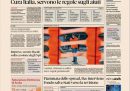 Le prime pagine dei giornali di oggi sono sempre occupate dalle notizie sul coronavirus (SARS-CoV-2): i titoli principali riguardano le ipotesi di restrizioni più forti su passeggiate, attività sportive all’aperto e orari di apertura dei negozi, i dati di ieri sul contagio, con il maggior numero di morti dall’inizio dell’epidemia in Italia, la riunione straordinaria del Consiglio della Banca Centrale Europea che ha approvato un piano di acquisto di titoli di stato per 750 miliardi di euro per sostenere l’economia, e la situazione drammatica delle province di Bergamo e Brescia.