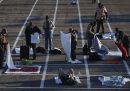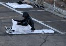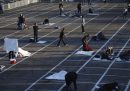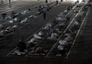 A Las Vegas un alloggio per persone senza fissa dimora con 500 posti disponibili è stato chiuso, dopo che un ospite era stato trovato positivo al coronavirus. Complice il clima mite, per far fronte all’emergenza la città ha dunque deciso di far dormire chi non ha una casa in un parcheggio all’aperto, contrassegnando per terra gli spazi per garantire le distanze necessarie a evitare il contagio come fossero stalli per le auto. Sull’asfalto è stato steso un telo blu, per facilitare la pulizia dell’area.