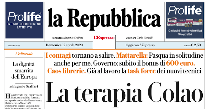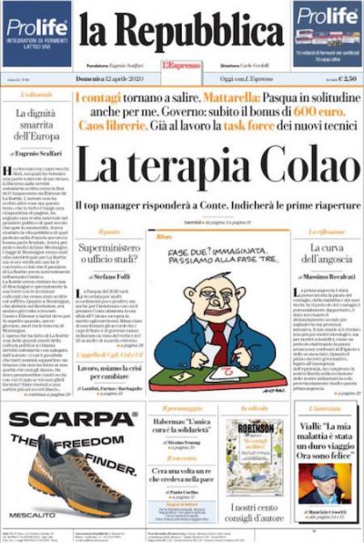 Sulle prime pagine di oggi si discute delle ultime decisioni del governo sul coronavirus e delle riaperture delle attività commerciali che saranno permesse nelle prossime settimane. Diverse regioni hanno detto che per ora intendono tenere in vigore misure più restrittive di quelle annunciate dal governo, e anche questo è un argomento a cui sono stati dedicati molti titoli: ieri la Lombardia è stata la prima ad approvare nuove regole regionali, oggi dovrebbero arrivare anche Veneto e Piemonte.