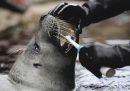 Possiamo dividere le foto di animali da fotografare questa settimana in due categorie: quelle che arrivano dagli zoo chiusi al pubblico per l’epidemia da coronavirus, ma che hanno comunque all’interno animali che richiedono cure, come spazzolare i denti a una foca. Oppure quelle degli animali che si spingono in città ad esplorare, complici le strade vuote per le restrizioni: un gruppo di cerve è stato visto passeggiare in Polonia, mentre un gatto solitario si gode in pace luoghi solitamente affollati e turistici a Istanbul e un germano reale curiosa intorno alla porta di Brandeburgo a Berlino.