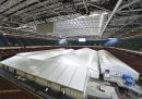 In mezzo mondo gli impianti sportivi sono stati trasformati in ospedali da campo, cliniche per i test, parcheggi temporanei: le foto