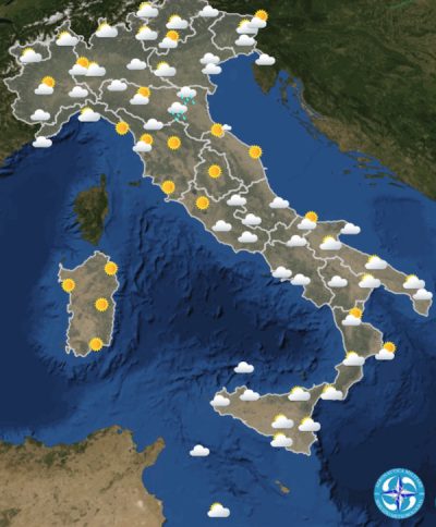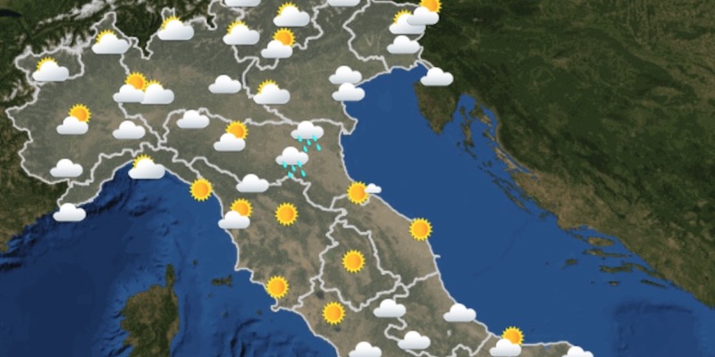 Domani, in mattinata, ci saranno rovesci o temporali sul Nord Italia e deboli piogge o rovesci sugli Appennini del Centro Italia. Per il resto ci sarà il sole al nord e cielo nuvoloso al centro e al sud. Le temperature massime aumenteranno al nord, in Toscana, Umbria, Sardegna e Sicilia orientali, Molise e Puglia adriatica; nel resto del paese caleranno.