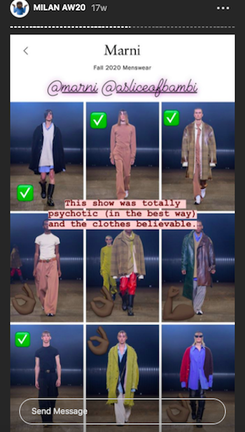 Seguire Vogue su Instagram è molto utile perché trasmette in diretta molte sfilate. Uno degli account più seguiti è Diet Prada, implacabile segnalatore di copie e plagi di stilisti famosi che, da fonte di divertimento, è diventato negli ultimi tempi troppo aggressivo per molti.