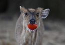 Tra gli animali meglio fotografati in settimana ci sono, in ordine sparso, un muntjak (sapete cosa è un muntjak?) che mangia un pomodoro, una rana mangiata da un serpente e usignoli che reclamano cibo, per poi passare ad un po’ di copie di animali vicini-vicini: orsi polari, orsi bruni e leoni. E per finire un pellicano a Mykonos, chi nuota con un cigno a Londra e qualche foto dagli zoo di Roma e di Yokohama.