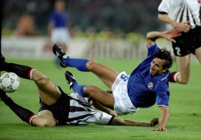 Fino alla semifinale del 3 luglio persa ai rigori contro l’Argentina, per i tifosi italiani fu una grande estate, entrata poi nell’immaginario culturale del paese come quella delle “notti magiche”, fra i gol di Totò Schillaci venuto fuori dal nulla e quello memorabile di Roberto Baggio, il giocatore più atteso della nazionale allenata da Azeglio Vicini. Fu una bella estate anche per l’Inghilterra di Gary Lineker, Paul Gascoigne e David Platt, quarta classificata, e soprattutto per la Germania Ovest degli interisti Lothar Matthäus, Jürgen Klinsmann, Andreas Brehme e del romanista Rudi Völler, che l’8 luglio si prese una grande rivincita: divenne campione del mondo per la terza volta nella sua storia, in casa della nazionale che l’aveva battuta in finale nel 1982 e contro l’Argentina, squadra contro cui aveva perso la finale del 1986 in Messico.