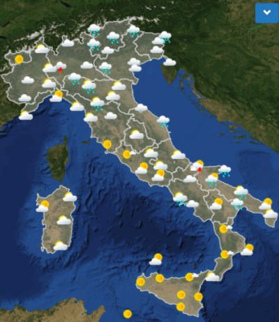 Le previsioni meteo per mercoledì dicono che sarà una giornata nuvolosa e piovosa in molte zone d’Italia: di mattina pioverà nel Nord-Ovest e in Trentino-Alto Adige. Di pomeriggio peggiorerà anche in Emilia-Romagna, Umbria e Lazio e pioverà anche in Puglia, mentre nelle altre regioni sarà sereno. Di sera e di notte, invece, la situazione migliorerà e continuerà a piovere solo nelle province di Piacenza, Brescia e Bolzano.