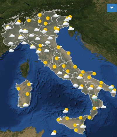 Le temperature massime si abbasseranno al Nord e al Sud e saranno più o meno stabili nelle regioni centrali del paese.