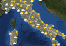 Nel Sud invece la giornata sarà prevalentemente nuvolosa (tranne la mattina in Abruzzo e in Molise e l’intera giornata nella Puglia settentrionale, dove ci sarà il sole) con alcuni casi di pioggia: la mattina nella provincia pugliese di Brindisi, quella calabrese di Cosenza e quella lucana di Potenza. Nel pomeriggio piogge e temporali in tutta la Calabria, in Sicilia (tranne la costa mediterranea) e nel sud della Campania e della Basilicata.