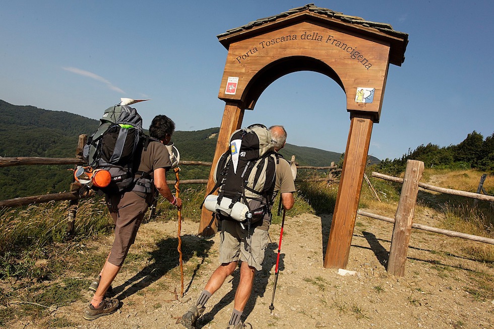 A segnarne l’inizio, a Pontremoli, c’è un grosso arco di legno con incise le parole “Porta Toscana della Francigena”.