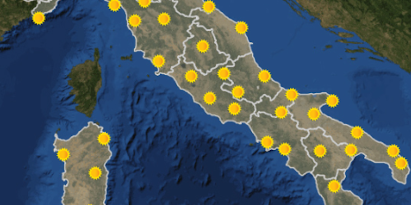 Le temperature massime aumenteranno, raggiungendo anche i 38° C, sulla Pianura Padana orientale, nelle regioni interne della Sardegna e in quelle centromeridionali.