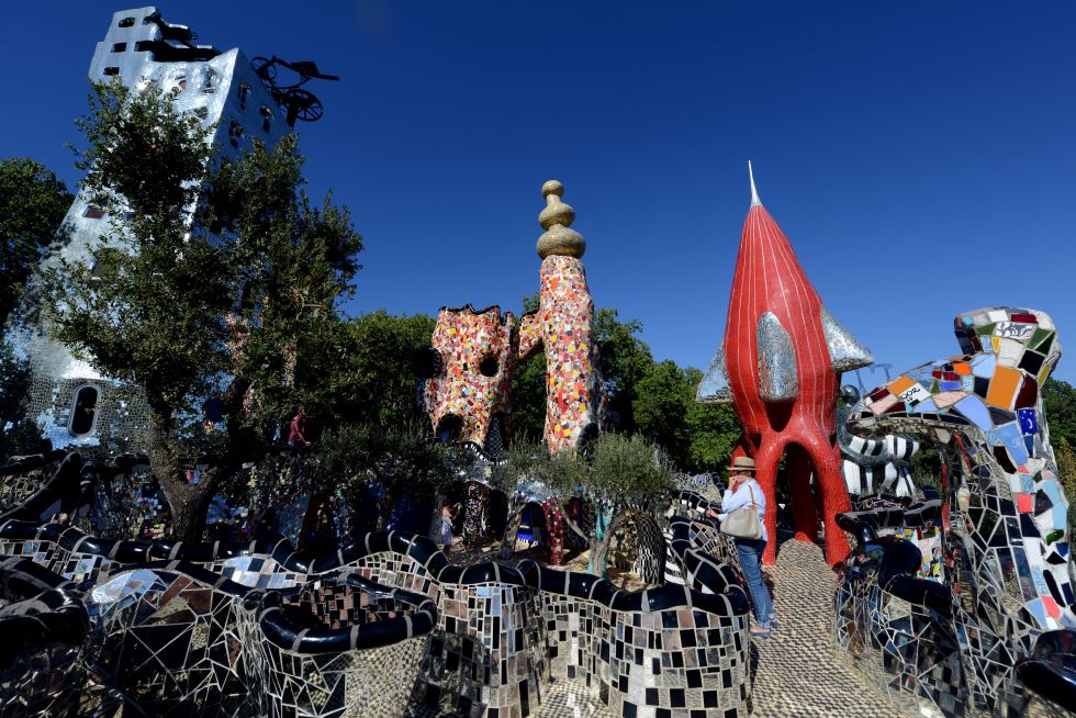 Tornando ai parchi artistici, ce ne sono due molto noti in provincia di Grosseto. Uno è il Giardino dei Tarocchi, nel comune di Capalbio. Progettato dall’artista Niki de Saint Phalle, è ispirato alle figure tipiche dei tarocchi, come dice il nome. A chi ci è stato potrebbe ricordare un po’ il Parc Güell di Gaudì a Barcellona. Aggirandosi per il parco si incontrano sia sculture alte fino a quindici metri che vere e proprie opere di architettura da esplorare come in una città, tutte caratterizzate dalla riconoscibile piastrellatura a mosaico di mille colori.