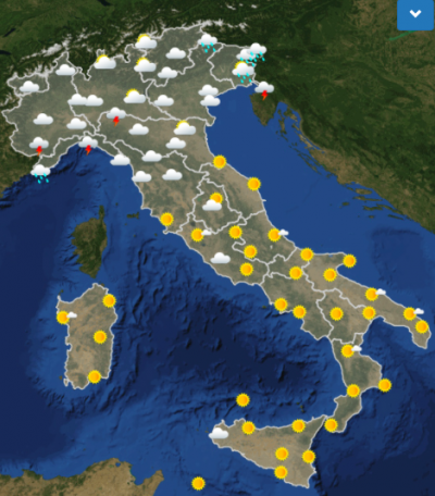 Le previsioni meteo per lunedì dicono che sarà una bella giornata al Sud e una brutta giornata al Nord e al Centro-Nord. Di mattina sarà nuvoloso in tutto il Nord e pioverà in Friuli Venezia Giulia e in Liguria. Di pomeriggio dovrebbe peggiorare in Lombardia, Veneto, Trentino-Alto Adige, Umbria e Marche. Di sera continuerà a piovere al Nord e peggiorerà anche in Emilia-Romagna, mentre di notte ci saranno schiarite.