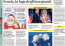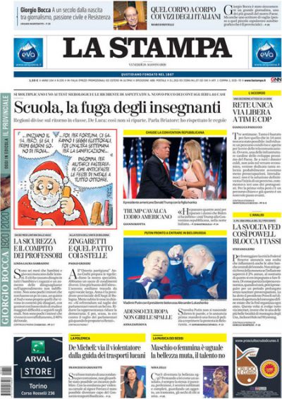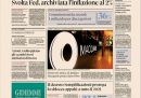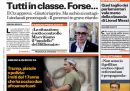 Anche oggi la maggior parte dei giornali si occupa in apertura delle discussioni sulle modalità di riapertura delle scuole e sulla gestione dei trasporti pubblici per gli studenti. Repubblica e il Sole 24 Ore titolano invece sulla decisione della Fed, la banca centrale degli Stati Uniti, di mantenere bassi i tassi di interesse per favorire la ripresa economica, il Messaggero apre sulla gestione dell’epidemia da coronavirus in Sardegna, il Manifesto commenta l’accordo nella maggioranza per la rete unica a banda larga in Italia, e Avvenire si occupa della decisione del TAR di Palermo che ha sospeso l’ordinanza del presidente della regione Sicilia Musumeci sull’allontanamento dei migranti dall’isola.