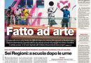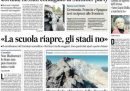 La riapertura delle scuole, con tutti i suoi problemi e incertezze, è oggi su diverse prime pagine dei quotidiani italiani, insieme alla morte di Chadwick Boseman, attore protagonista del film di supereroi Black Panther morto per un tumore a 43 anni, e alla situazione del coronavirus in Francia, che preoccupa molti. Sui quotidiani sportivi, invece, sempre il calciomercato: con il faccione di Luis Suarez.