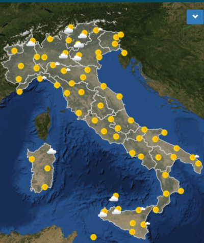 Le previsioni meteo per domani dicono che tornerà il beltempo più o meno ovunque, con qualche eccezione al Sud. Al Nord ci saranno nebbie mattutine nella Lombardia meridionale, soprattutto in provincia di Pavia, e nuvole nel Trentino-Alto Adige, ma il tempo migliorerà nel pomeriggio anche in questi due posti. In tutte le regioni del Centro e del Sud ci sarà il sole tranne in Sicilia, dove fin dalla mattina ci saranno nuvole e nel pomeriggio probabilmente anche leggere piogge.