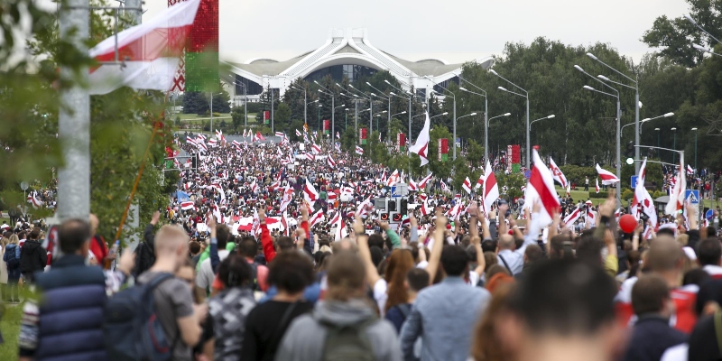 Nella capitale Minsk più di 100mila persone hanno chiesto le dimissioni del presidente Lukashenko