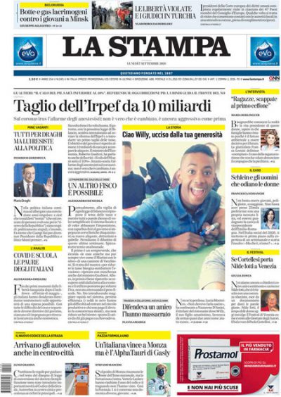 Le prime pagine di lunedì 7 settembre 2020