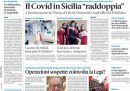 La chiusura della campagna elettorale per il referendum per la riduzione del numero dei parlamentari e per le elezioni regionali è la notizia in apertura sulla maggior parte delle prime pagine di oggi, che si concentrano soprattutto su Toscana e Puglia dove il risultato sembra più incerto. Il Messaggero e il Mattino si occupano invece dei dati di ieri dei positivi al coronavirus, in aumento rispetto ai giorni precedenti, la Stampa titola sull’inchiesta sui soldi della Lega, per la quale si indagherebbe sul possibile coinvolgimento dello staff di Salvini, Avvenire si preoccupa degli effetti sociali e economici della pandemia, e i giornali sportivi presentano il campionato di serie A che inizia oggi.