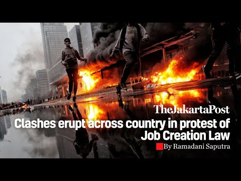 Nel terzo giorno di proteste contro la legge – organizzate nonostante un divieto dovuto alla pandemia da coronavirus – i manifestanti di Giacarta hanno cercato di dirigersi verso il palazzo presidenziale, e alcuni di loro hanno lanciato sassi contro la polizia e causato alcuni incendi. In merito il New York Times ha scritto che nel resto del paese le decine di altre proteste organizzate sono state invece «perlopiù pacifiche», ma ci sono comunque stati scontri e arresti. Secondo gli organizzatori, alle proteste ha partecipato circa un milione di persone, ma è ovviamente un dato impossibile da verificare.