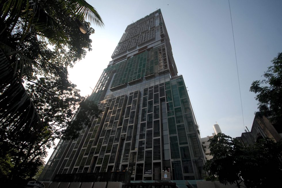 Il grattacielo Antilia a Mumbai, dove vive la famiglia Ambani. ( EPA/DIVYAKANT SOLANKI)