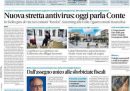 Le discussioni dentro al governo sulle nuove misure per contenere la seconda ondata dell’epidemia da coronavirus, che finiranno in un decreto della presidenza del Consiglio atteso per oggi o domani, sono sulle prime pagine di molti giornali. Si parla poi dei contagi in crescita, della situazione negli ospedali e delle conseguenze economiche di nuove chiusure. La prima ministra neozelandese Jacinda Ardern è su molte prime pagine, insieme a Zlatan Ibrahimovic del Milan, che ieri ha vinto il derby di Milano.