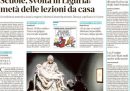 Le nuove misure per contenere la diffusione dell’epidemia da coronavirus decise dalla Campania, con il coprifuoco notturno, e dal Piemonte, con la chiusura dei centri commerciali nel fine settimana, sono in apertura sulla maggior parte dei giornali di oggi, con le voci su un nuovo DPCM che potrebbe essere approvato domenica se i numeri dei contagi registrati continuassero a aumentare. Libero titola sulle parole del presidente del Consiglio Conte, che ha detto che le prime dosi del vaccino potrebbero essere disponibili da dicembre, il Messaggero si occupa invece dei contenuti della manovra economica, mentre i giornali sportivi commentano le vittorie di Juventus e Lazio nella prima partita di Champions League.