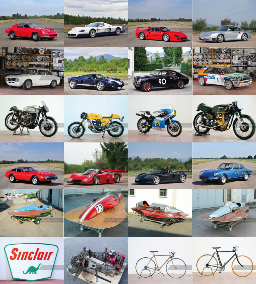 Tra Ferrari, Porsche, Aston Martin e Maserati, vennero sequestrati anche mezzi e oggetti più disparati, comuni e non. All’asta di Sotheby’s a Milano vennero battuti un motoscafo Lamborghini Miura, una Ducati Desmosedici del 2008, decine di bici da corsa, una Jaguar D-Type per bambini da 30.000 euro, un centinaio di vecchie insegne stradali, due vecchie bici dell’esercito svizzero e poi gomme, motori, idroplani, go-kart, furgoni militari, station-wagon, utilitarie e monoposto di Formula 3.