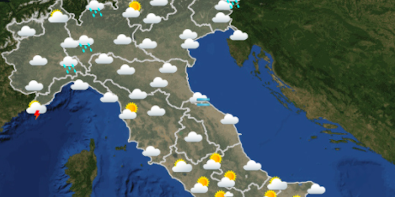 Le previsioni meteo per mercoledì dicono che in Italia sarà una giornata nuvolosa in gran parte d’Italia e piovosa in alcune zone del Nord: di mattina sarà soleggiato solamente in Calabria e in Sicilia, e pioverà in Liguria, in Valle d’Aosta e nei dintorni di Milano. Di pomeriggio ci saranno schiarite nel Lazio e in Campania, mentre continuerà a piovere in Lombardia. Infine di sera è prevista pioggia anche nelle province di Cuneo e di Piacenza, e di notte in quella di Sondrio.