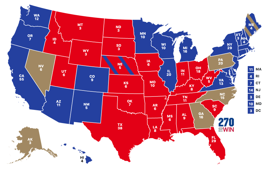 Prima che arrivino i risultati dal Nevada, Biden potrebbe raggiungere i 270 elettori vincendo in uno stato fra Georgia, Pennsylvania e North Carolina. Al momento sembra avanti soprattutto in Pennsylvania, dove però i risultati arriveranno nei prossimi giorni, e sembra avere qualche possibilità in Georgia.